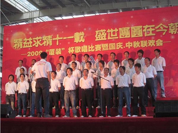9月29日下午,2009年度“廈裝杯”歌唱比賽在廈裝公司總裝車間舉行。此次歌唱比賽以“精益求精十一載、盛世團圓在今朝”為主題,賀祖國60周年華誕、喜迎中秋、慶祝廈裝成立11周年。公司及各部門從6月份開始籌備此次比賽,此次比賽分為集體組和個人組,集體組(合唱)以部門為單位,最終有6支隊進入當(dāng)天的決賽,個人組通過先前的部門推薦及預(yù)賽選拔,最終有11人闖入決賽。