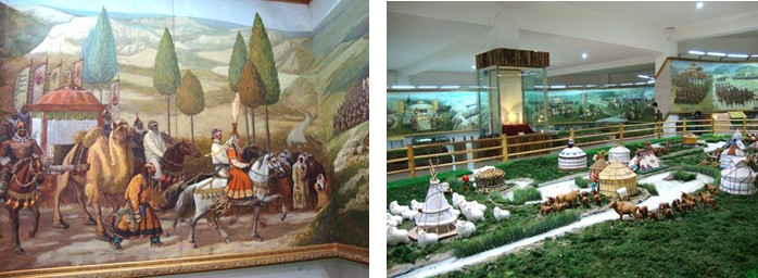 隨后我們進(jìn)入了成陵中最壯觀的蒙古歷史文化博物館,參觀長(zhǎng)達(dá)206米的《蒙古歷史長(zhǎng)卷》油畫是世界上最長(zhǎng)的油畫和各種蒙古用品模型。